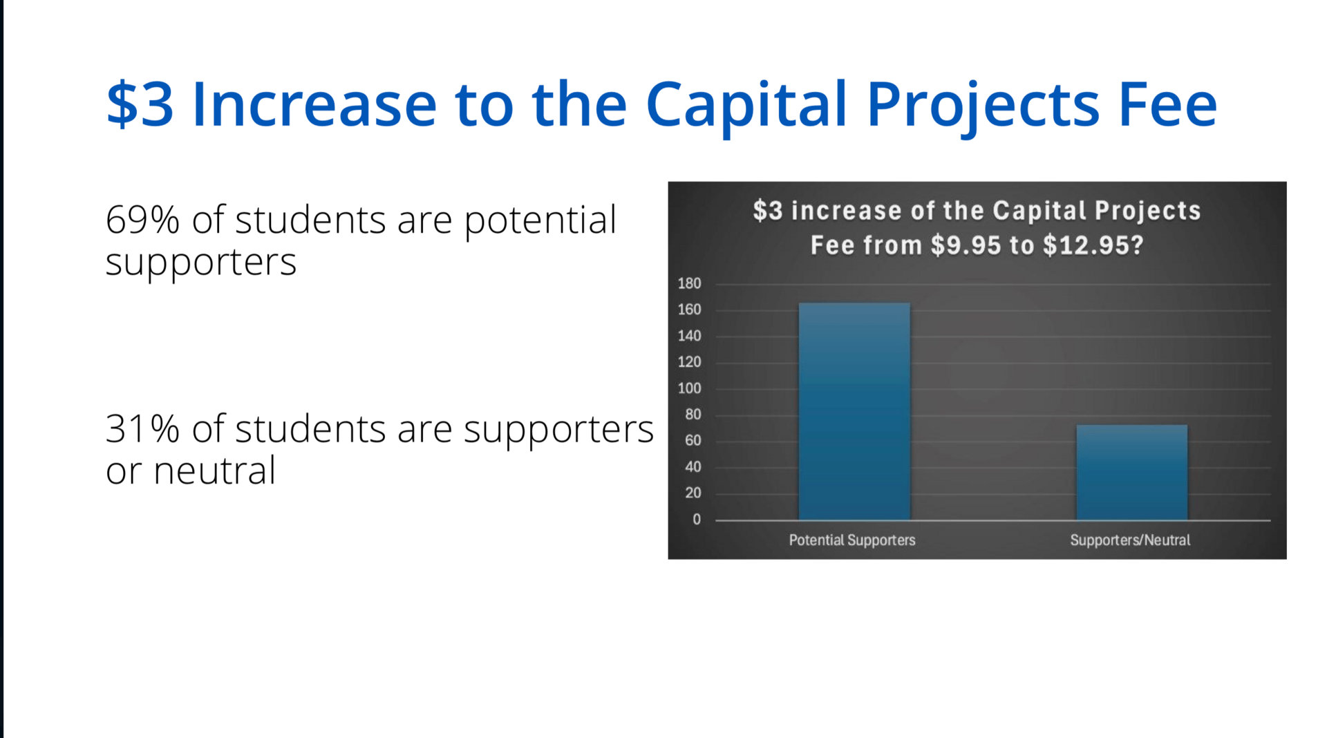 Howdy! Quyen has generously given me this platform to crash out about graphs. Boy, I did not know I had such strong opinions about this. Let me set the scene. Wednesday February 11th, I’m lying on the couch when Quyen comes home from AMS council. She pulls out her phone and shows me a couple graphs that were included in a presentation about student opinions on proposed fee increase referenda that will appear on the ballot this election. This sets off a cascade of feelings as my little Research-Pilled brain attempts to understand how we got here. Before I begin my Crash Out™, I’d like to say that I have nothing personally against the presenters, I’m sure y’all are chill. However, the presentation of these survey results was blatantly misleading and a textbook example of bad dissemination of results.